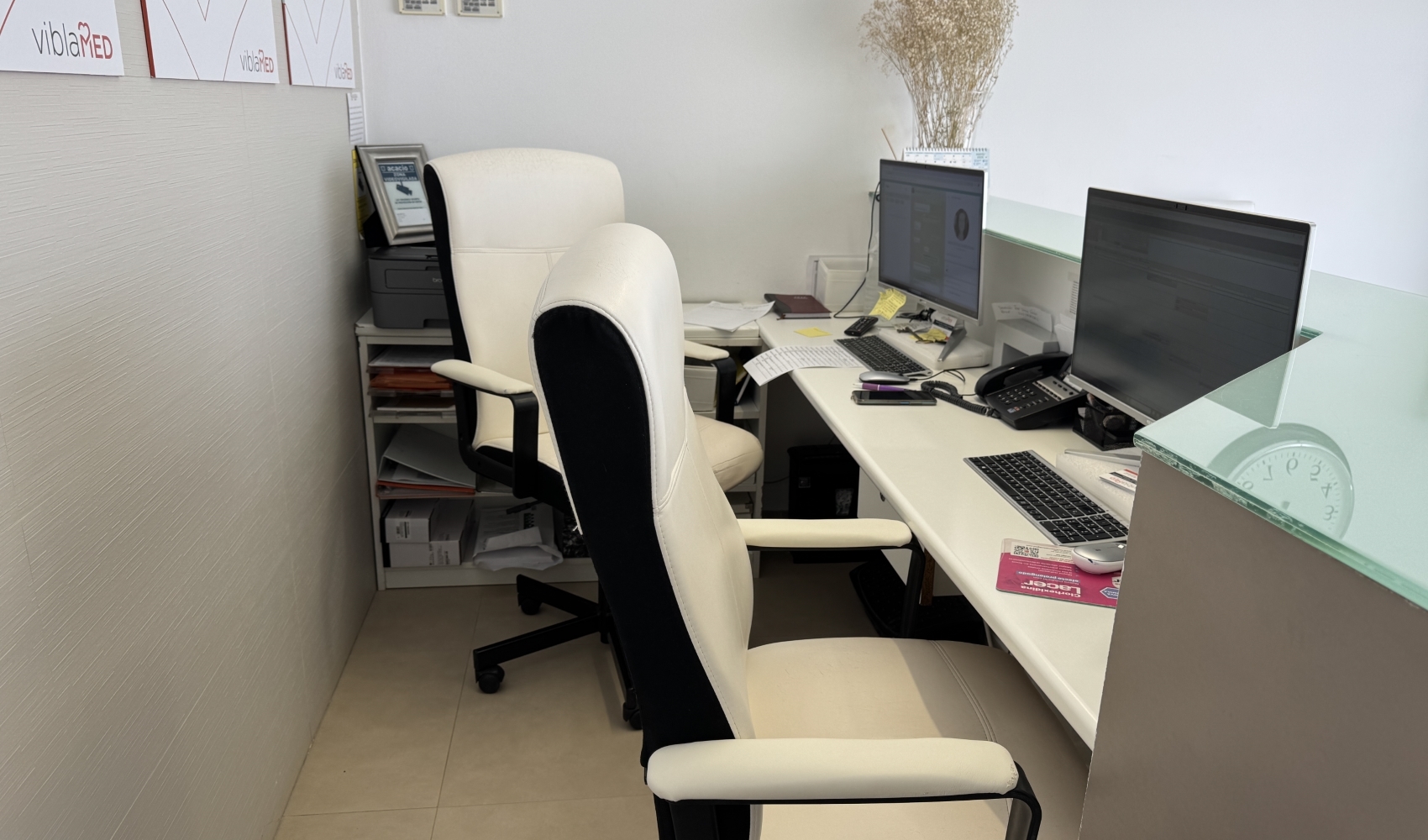 Se subasta el conjunto de bienes muebles procedente de una clínica dental completamente equipada. El inventario incluye el mobiliario de recepción, despachos, salas de espera, ocho gabinetes clínicos, sala de rayos, esterilización, laboratorio, vestuarios y baños, así como una amplia dotación de instrumental odontológico y quirúrgico especializado.